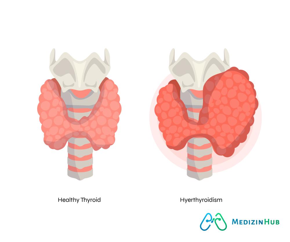 - Graves’ disease, leading to hyperthyroidism and gland enlargement