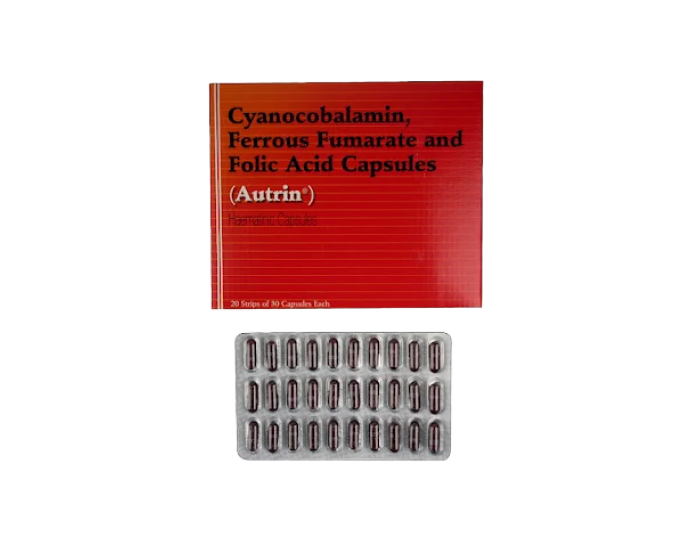 Autrin Capsule is a dietary supplement that treats and prevents iron deficiency, anemia, and folic acid insufficiency. Nutritional deficiencies occur when the body does not absorb or obtain adequate nutrients from meals, whereas anemia is a medical illness characterized by a lack of red blood cells or hemoglobin in the blood, re...