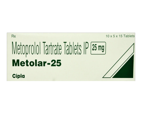 Metolar 25 Tablet is a short-acting beta blocker that primarily targets the heart. It works by decreasing the heart rate and increasing the heart's efficiency in pumping blood throughout the body.