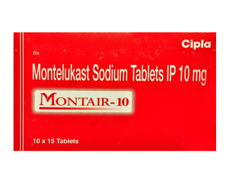 Montair 10 Tablet is a prescription medication used to prevent asthma and treat allergy symptoms including sneezing and a runny nose. It lowers inflammation in the airways, making breathing easier.