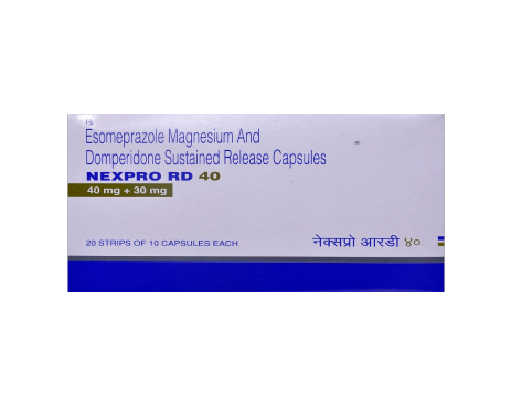 Nexpro RD 40 Capsule is primarily used to treat gastroesophageal reflux disease (GERD) and indigestion in adults, alleviating symptoms such as heartburn and stomach discomfort. It also treats acid reflux, Zollinger-Ellison syndrome, and stomach ulcers. This is a combination of two medications: Domperidone and Esomeprazole, both ...