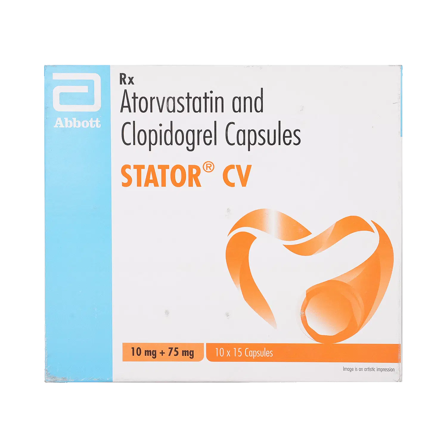 Stator CV 10mg tablet is a combination drug that commonly combines Atorvastatin (10 mg) and Cholestyramide (bile acid sequestrant). It is mainly used to treat high cholesterol and lower the risk of cardiovascular disease.