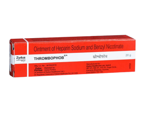 Thrombophob Ointment is primarily used to treat superficial thrombophlebitis, which occurs when your veins just under the skin's surface become irritated as a result of a blood clot. This drug is classified as an anticoagulant.